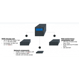 * Network components (router, switch, 10 Gbit/s LAN) allowing high-throughput data transfer between the units and convenient remote access